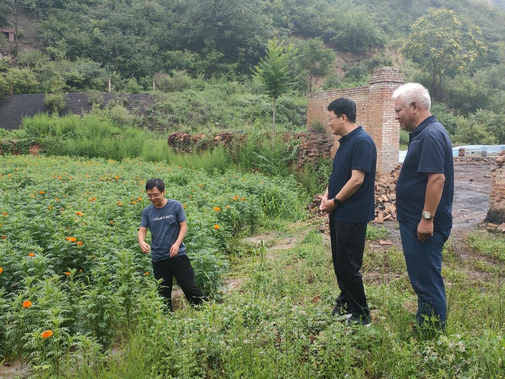 王志连书记一行在师家沟村查看万寿菊种植项目