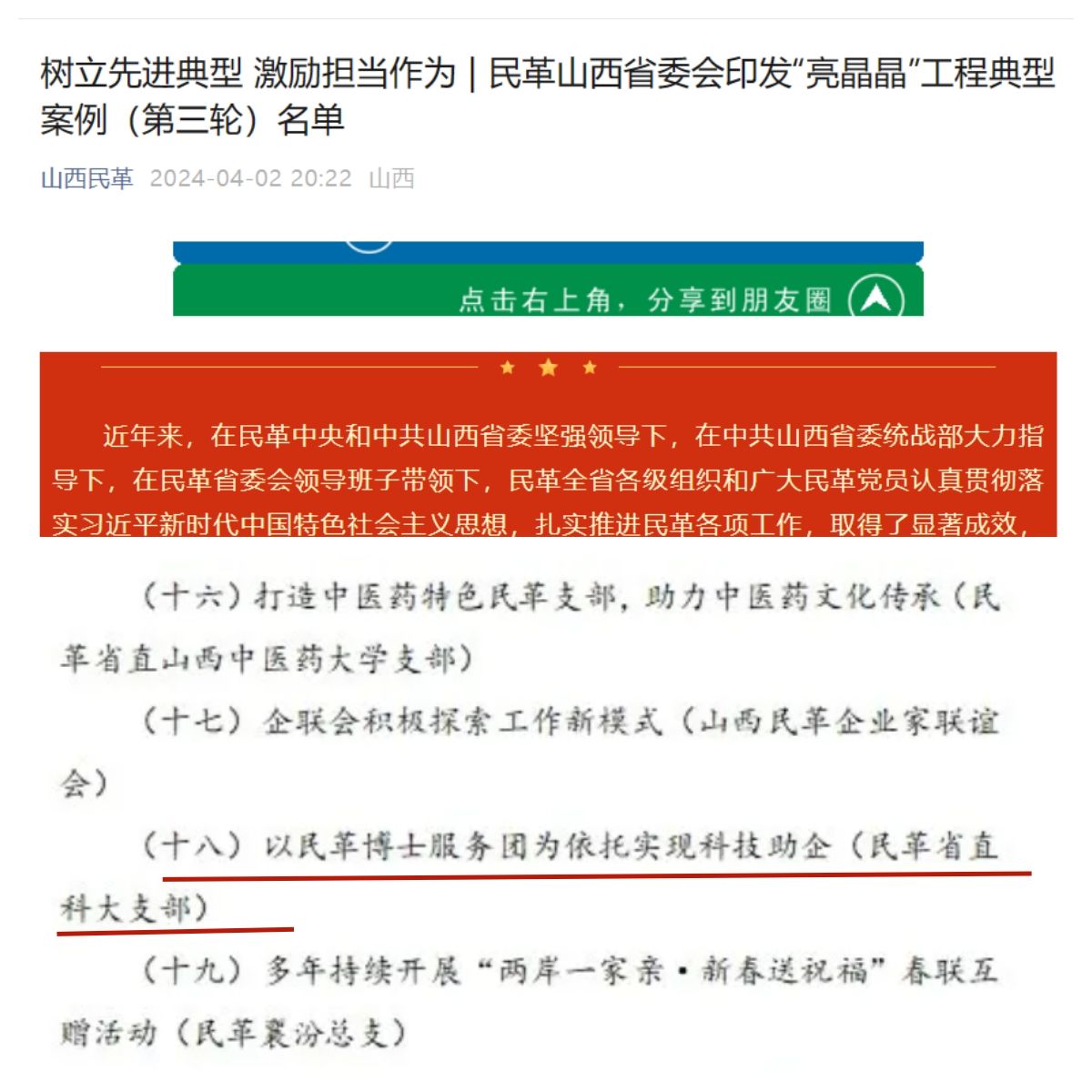 2024年4月2日,在民革山西省第十三届委员会第三次全体(扩大)会议上,民革山西省直属beat365英国正版支部喜获民革山西省委“亮晶晶”工程(第三轮)中亮点事例表彰。